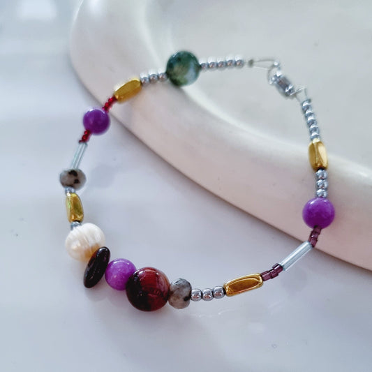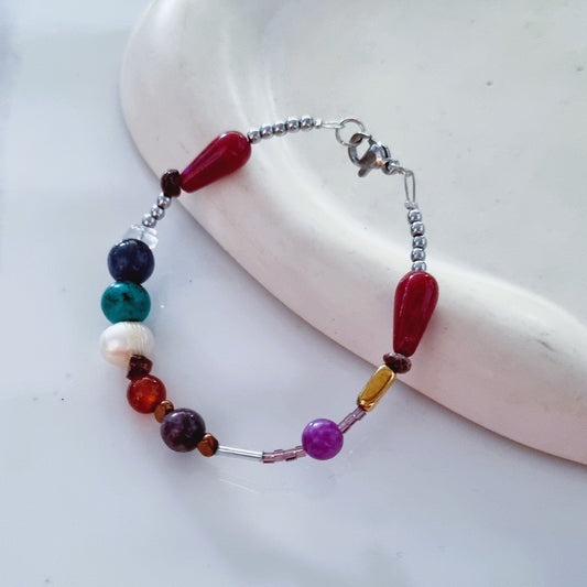 Stainless steel, beaded, semi precious & precious stones bracellets. All of them are handmade and - most of them - are unique (one of a kind).