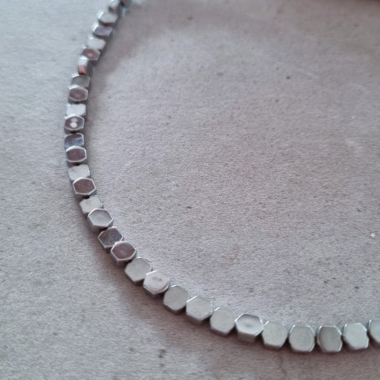 Silver hematite hexagon necklace