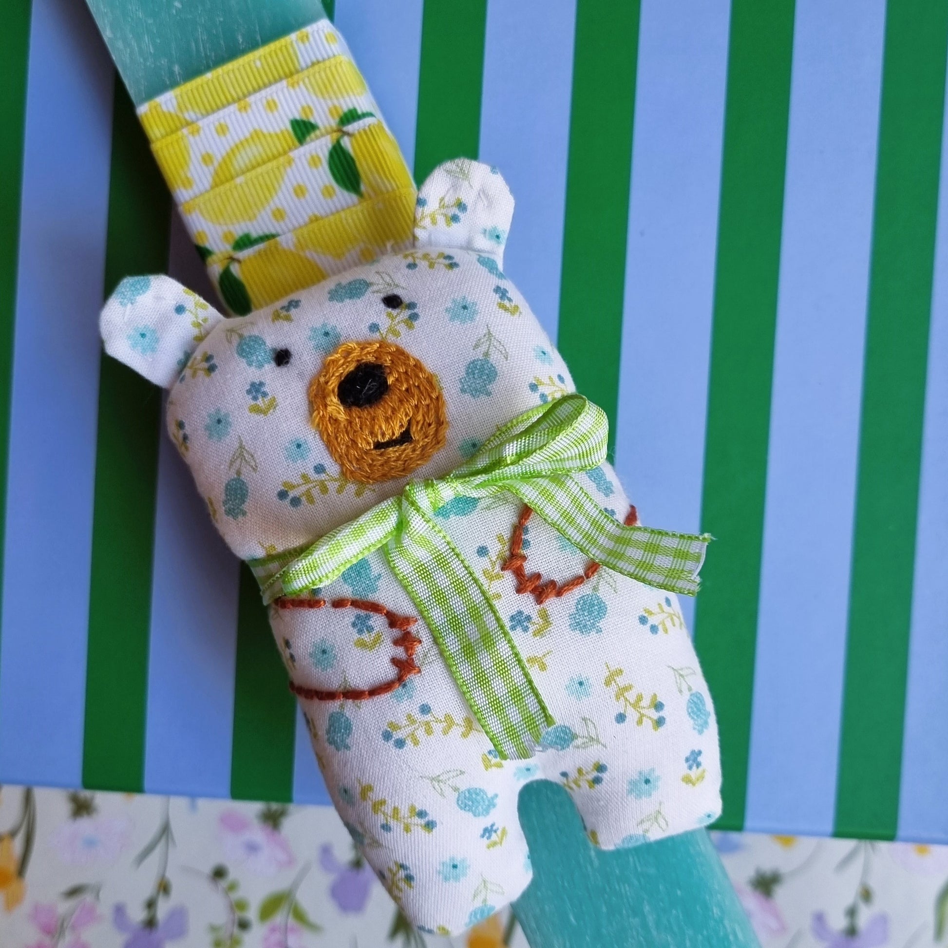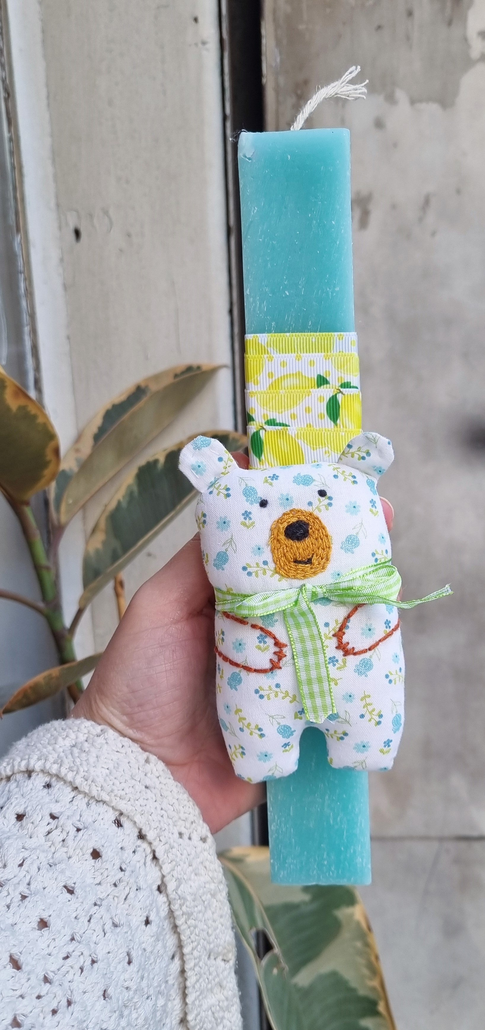 Λαμπάδα από αρωματικό κερί και χειροποίητο αρκουδάκι/λούτρινο.