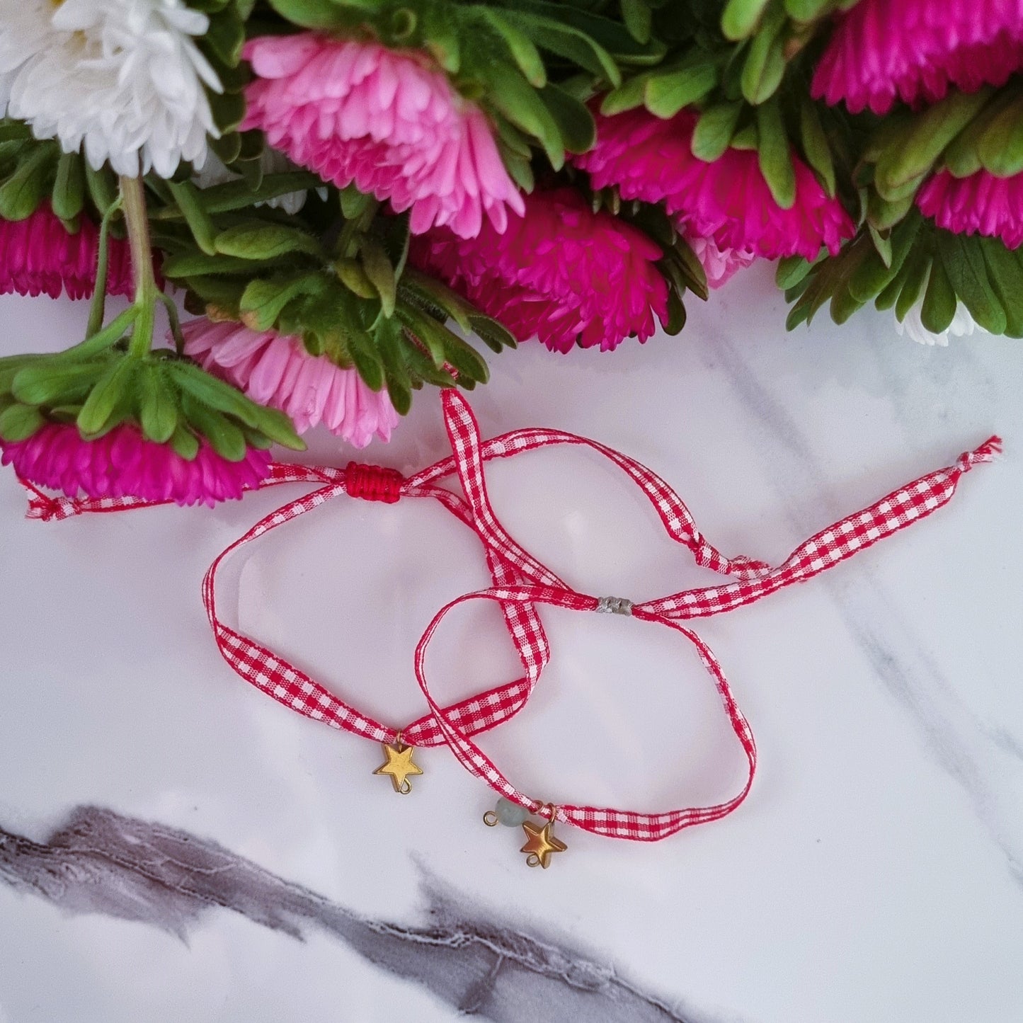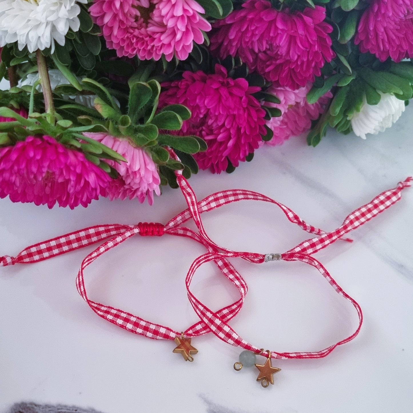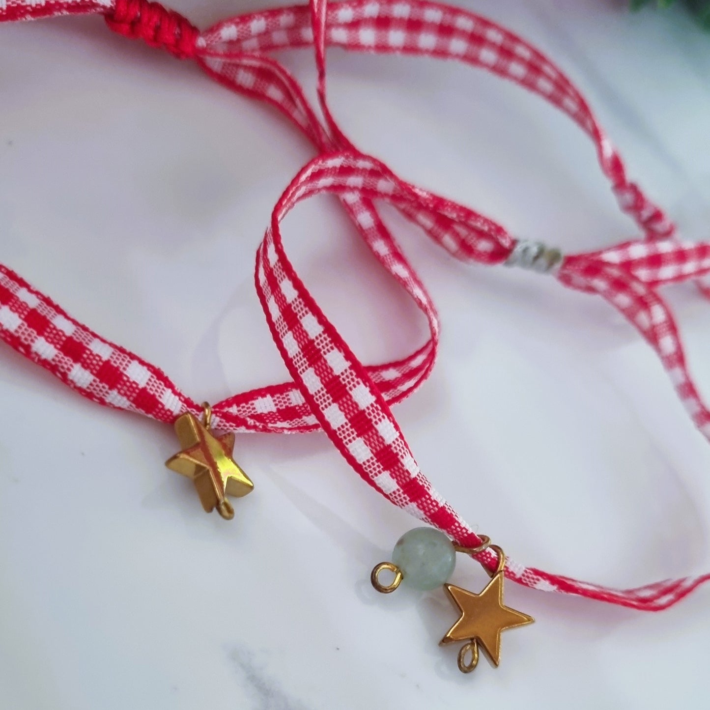 Χειροποίητο μαρτάκι με βαμβακερί κορδέλα και αστέρι από χρυσό αιματίτη. Το μέγεθος προσαρμόζεται: μπορείτε να το μικράνετε ή να το μεγαλώσετε όσο θέλετε.