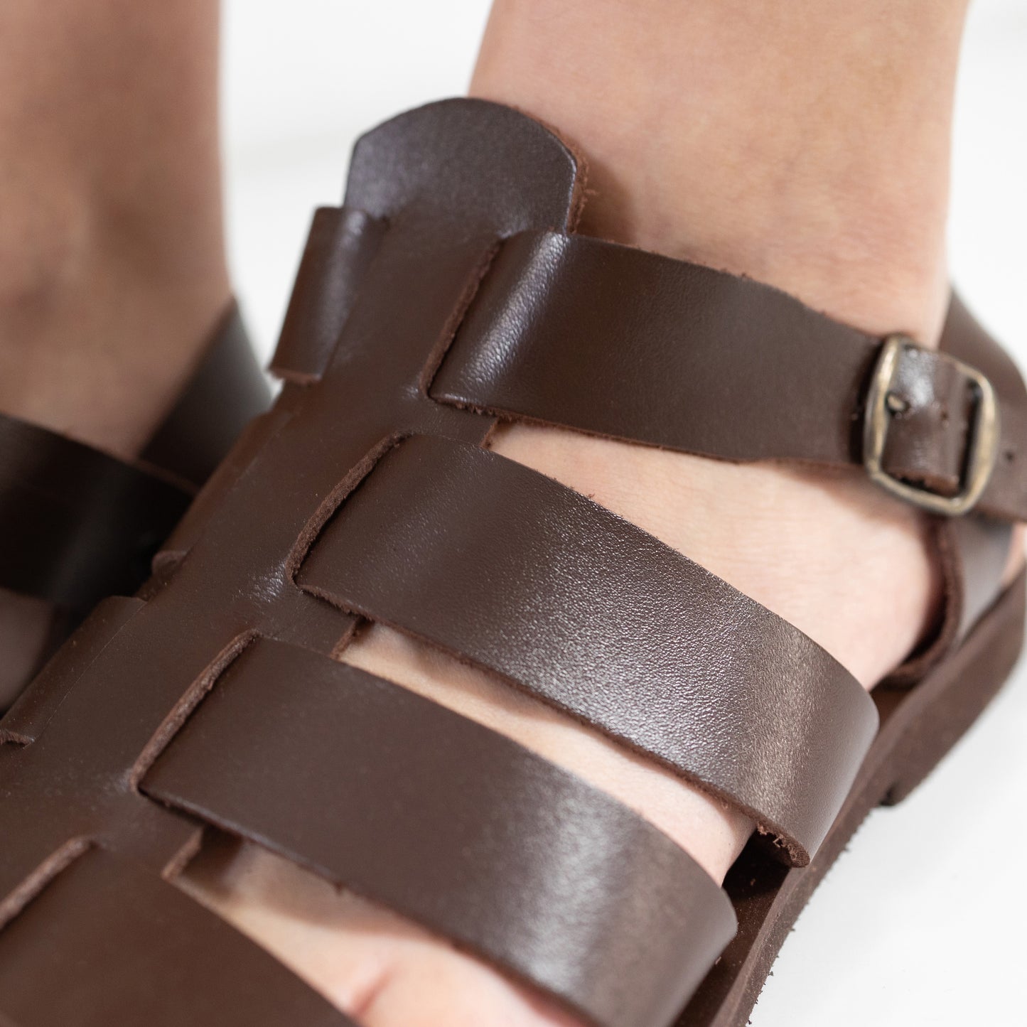 Το καφέ-σοκολατί χρώμα είναι εξαιρετικά εύκαμπτο και μαλακό στην υφή. Το δέρμα αυτό έχει ανάλαφρη αίσθηση, και προσαρμόζεται εύκολα στο φάρδος του ποδιού, χωρίς να ξεχυλώνει. Ο δερμάτινος πάτος βοηθά στην απορρόφηση του ιδρώτα.