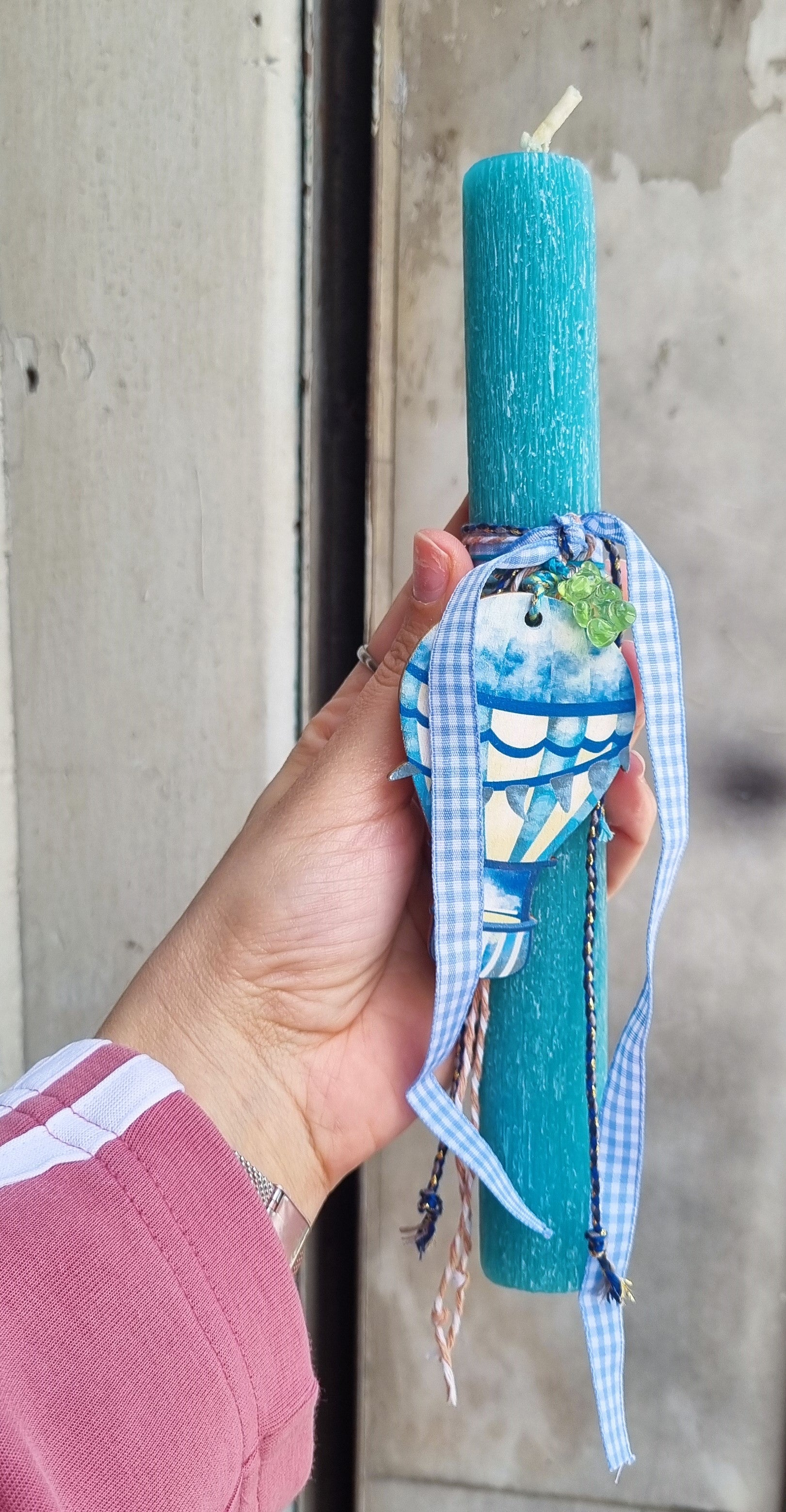 Λαμπάδα από αρωματικό κερί και ξύλικο στοιχείο αερόστατο.