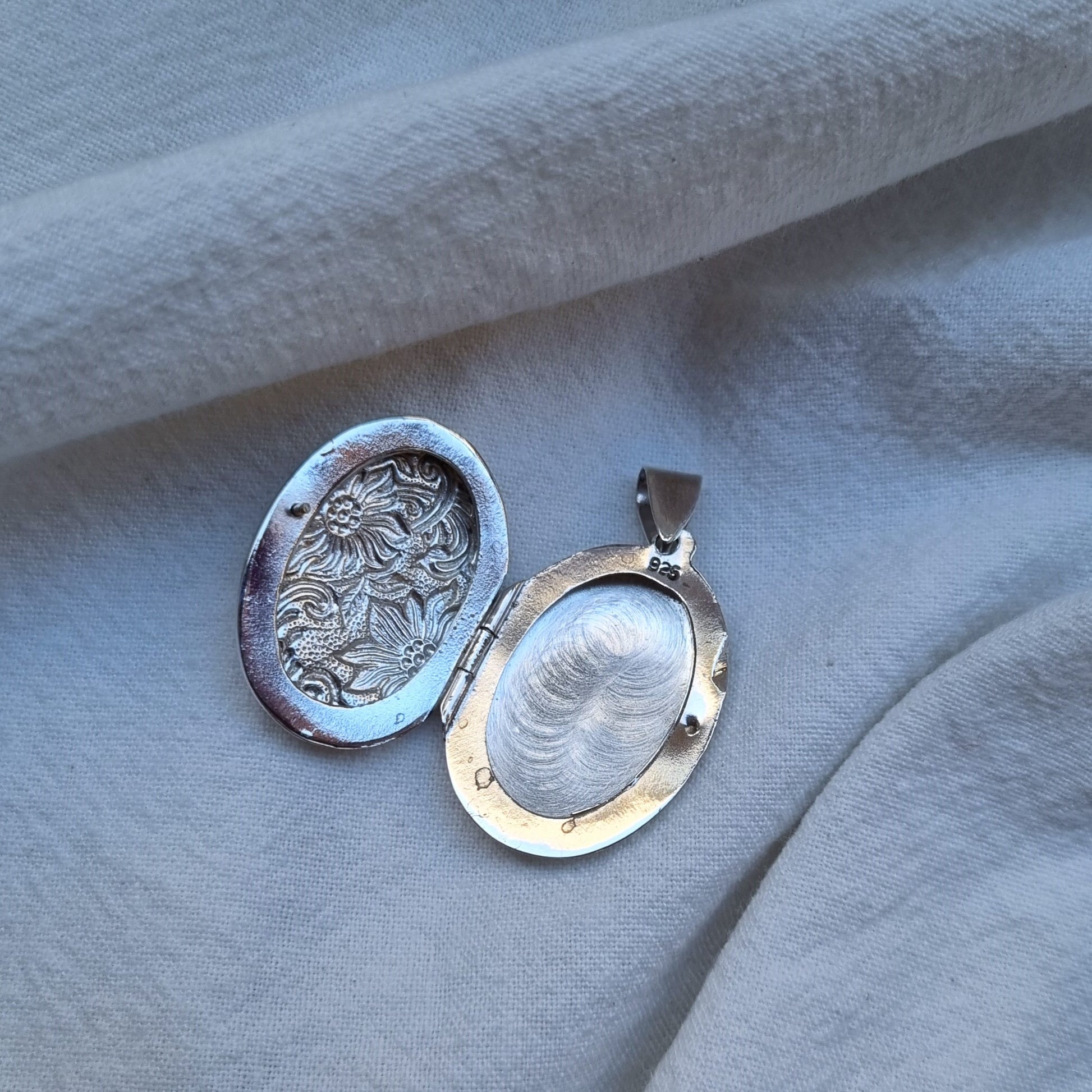This sterling silver 925 locket features an exquisite full flower engraving that captures timeless elegance. The oval pendant measures 22 x 27mm, offering a refined silhouette perfect for layering or standalone wear. Weighing 6.2 grams, it combines substantial quality with comfortable wearability. The detailed floral design adds sophisticated character to any collection, while the classic oval shape ensures versatile styling. An heirloom-worthy piece crafted from premium sterling silver.