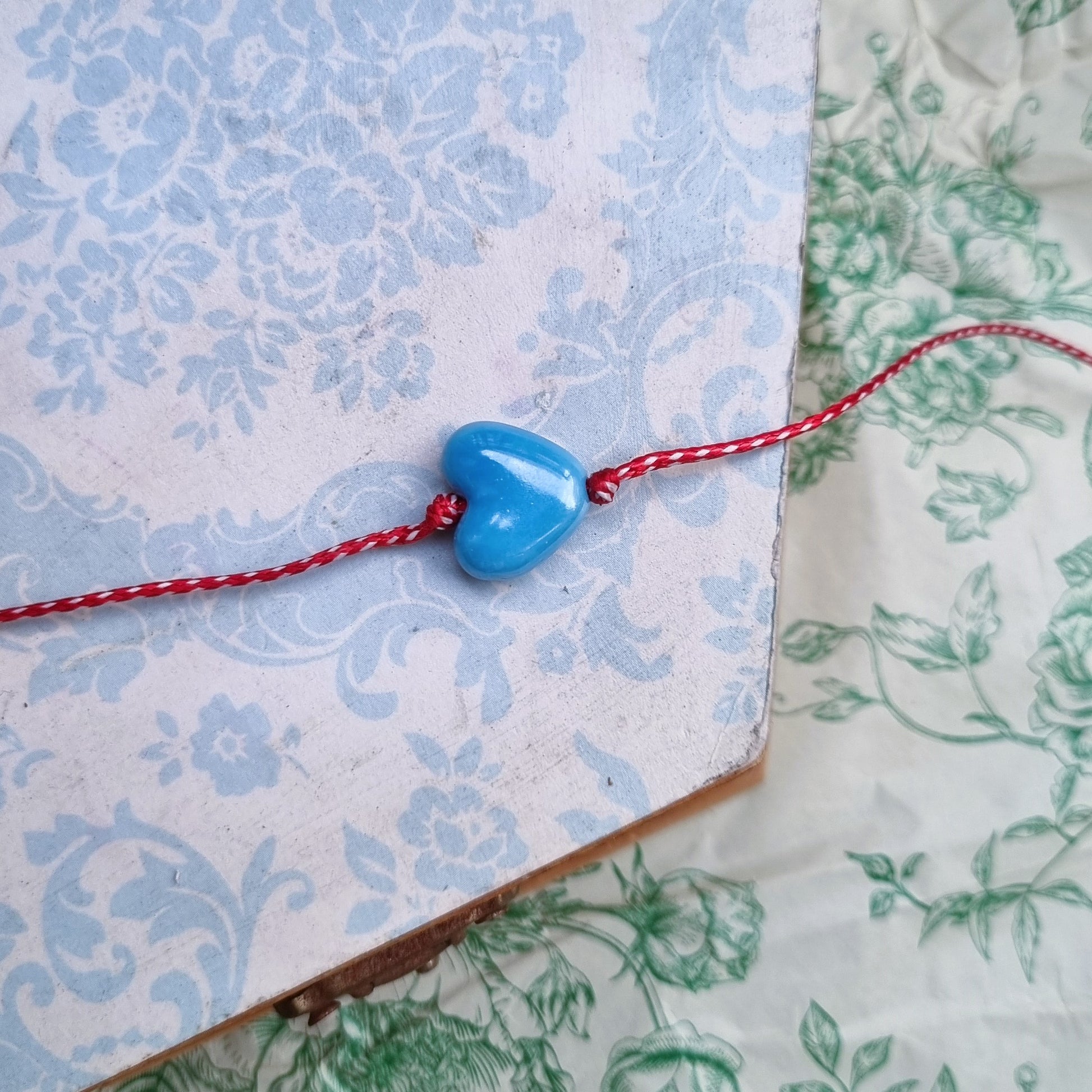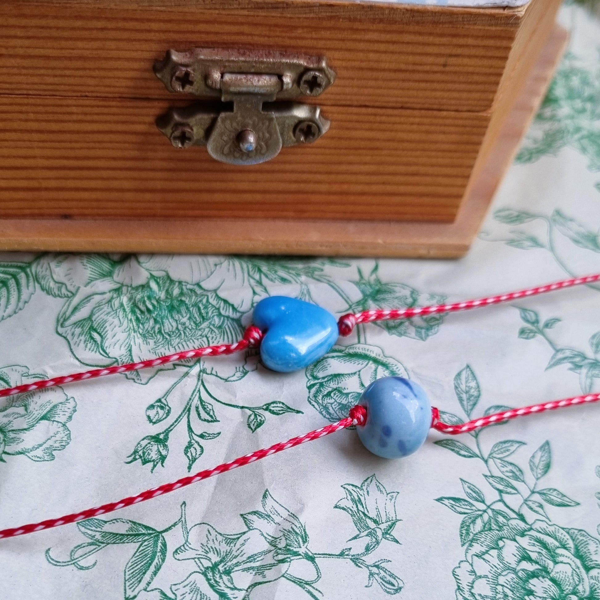 Χειροποίητο μαρτάκι με κορδόνι σε κόκκινο και λευκό χρώμα και κεραμικές πέτρες. Το μέγεθος προσαρμόζεται: μπορείτε να το μικράνετε ή να το μεγαλώσετε όσο θέλετε.