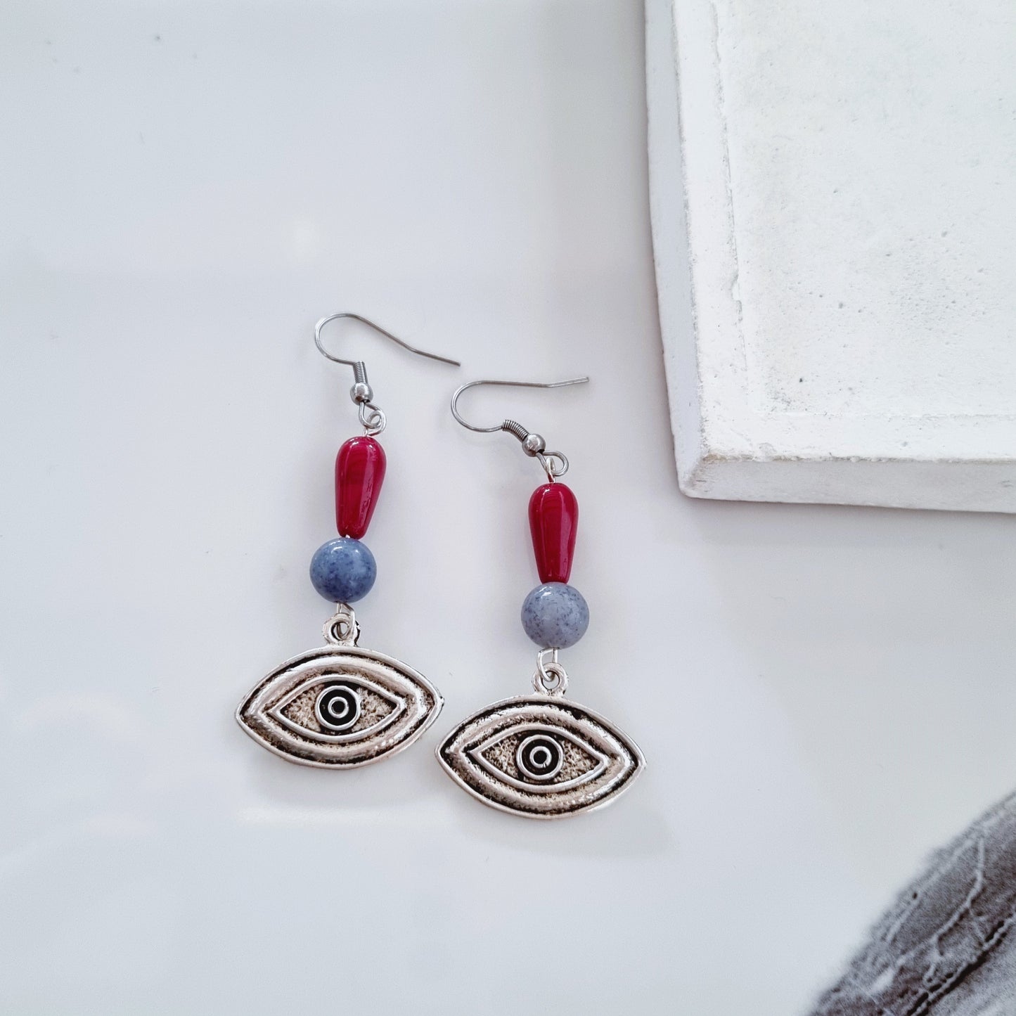 Silver eye earrings