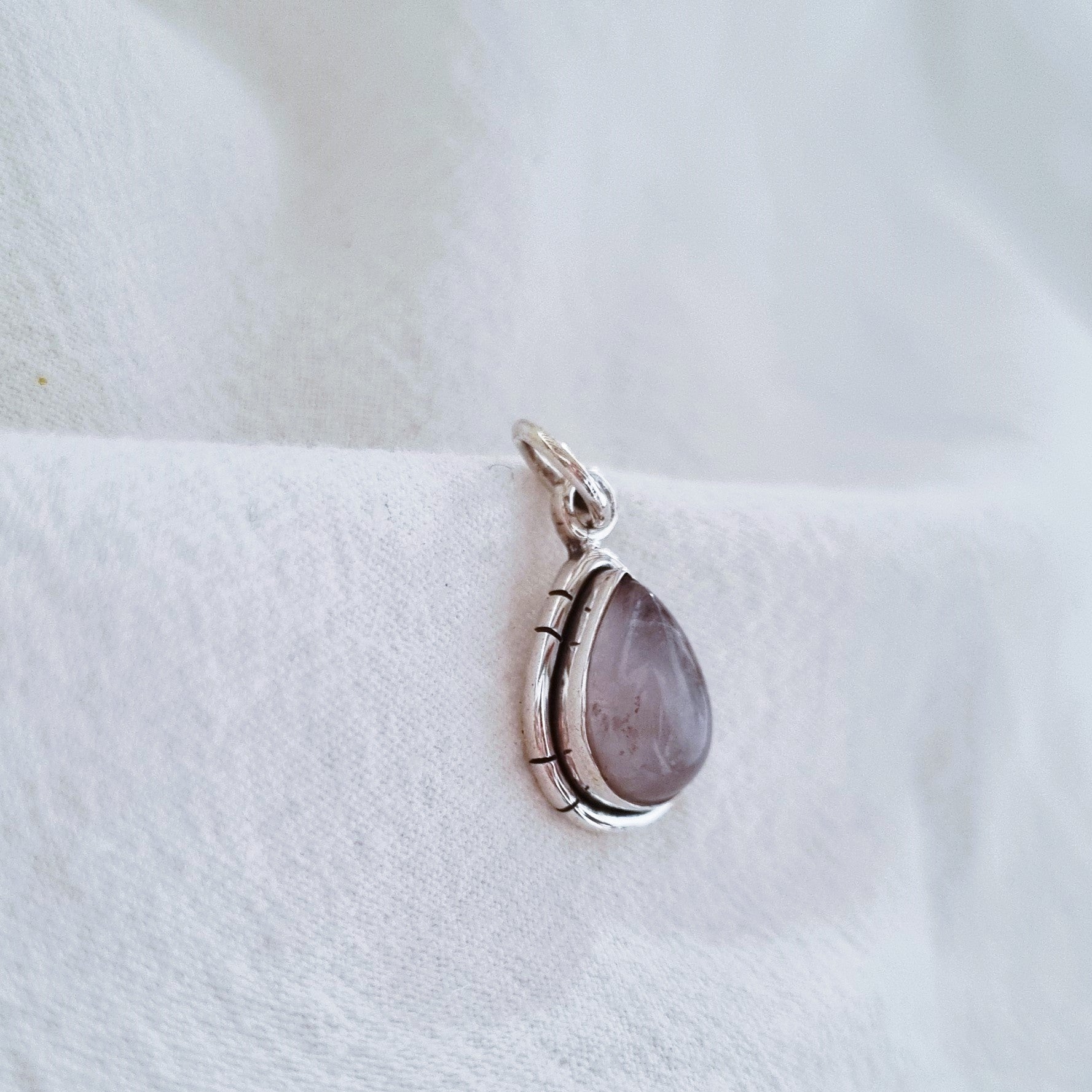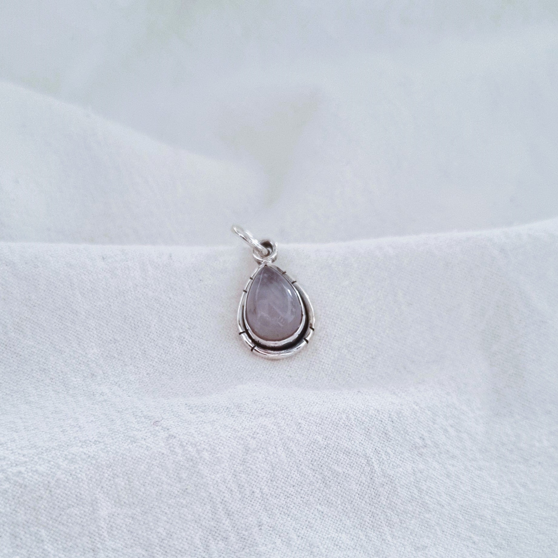Rose Quartz Pendant featuring a delicate 7x12mm stone set in a refined silver base, designed with whimsical charm. This lightweight piece measures 12x15mm overall and weighs just 2.4 grams, making it comfortable for everyday wear. Rose quartz is traditionally associated with gentle energy and emotional balance, while the silver setting provides timeless elegance. Perfect for those seeking a meaningful accessory that combines natural beauty with thoughtful craftsmanship.