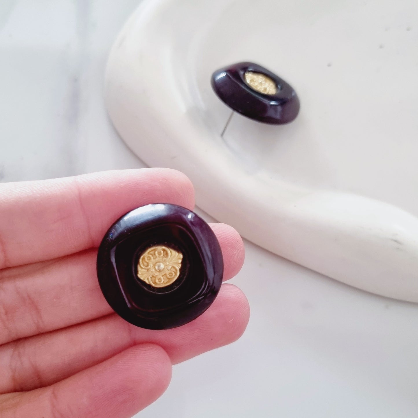 Vintage earrings made of lightweight buttons.